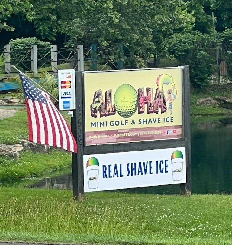 Whether you’re on a staycation or an out-of-town tourist to St. Louis, Aloha is fun for everyone! Whether it’s mom and dad with the kids, teenagers hanging out, or the work crew unwinding a bit, Aloha provides you with a well kept park-like setting. If you need space for a birthday party, a bachelor party, or an anniversary, Aloha can handle up to 75 people. If you’re planning an intimate outing with a first date, the loud celebration of a returning vet, a unique experience for mom or dad’s birthday, or rewarding a record sales quarter at the office…Aloha, definitely. If you reside in Ballwin, Des Peres, Kirkwood or Fenton…St. Charles, Arnold or from my home town of Eureka and beyond, please notice on the map that Aloha Mini Golf & Shave Ice, here in beautiful Valley Park, is just around the corner from EVERYONE! We are eager to serve you that Aloha Spirit every day from St. Patrick’s Day to Halloween. So call it whatever YOU like…we are laid-back here and we employ an old saying regularly: NO WORRIES AT ALOHA!!!